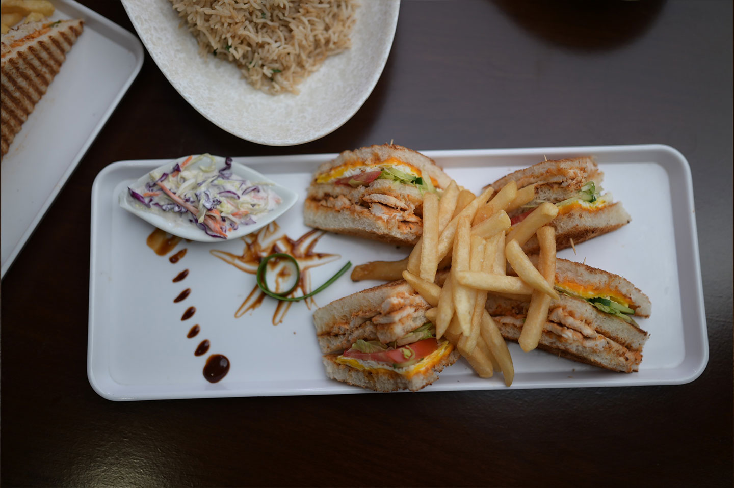 Elevate your expectations with our classic Club Sandwich. Layers of tender chicken, fried egg, fresh lettuce, and juicy tomato, all between perfectly toasted bread. A timeless favourite, expertly crafted.